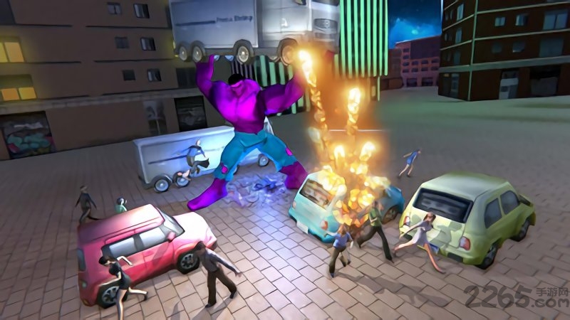 作为漫威宇宙中最具破坏力的超级英雄模拟器,本作完美呈现了绿巨人的战斗美学。市民们永远仰望着这位兼具狂暴与仁慈的绿色守护神,他的每次出场都伴随着地动山摇的震撼特效。游戏独创的"愤怒值系统"让变身过程充满张力:当看到无辜市民遭受伤害时,你的怒气槽会急速累积,最终触发毁天灭地的完全体变身!更令人兴奋的是,游戏中还能召唤蜘蛛侠、黑豹等漫威英雄组成梦幻战队,共同对抗邪恶势力。