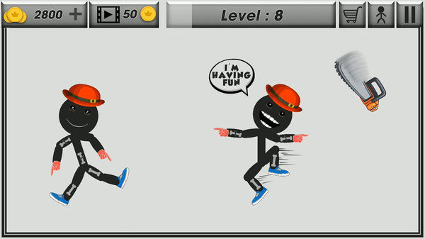 游戏提供了丰富多样的工具和武器,从基础的锤子、扳手到高级的电锯、链锯,应有尽有。玩家可以根据自己的喜好选择不同的武器,给予火柴人最猛烈的打击。
