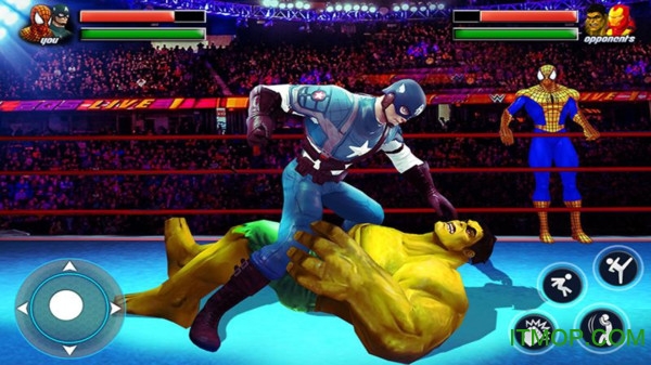 游戏采用直观的触控操作方式,玩家只需简单点击就能在摔跤比赛中释放英雄战士的强大技能。游戏收录了丰富多样的超级英雄摔跤手角色,每位角色都拥有独特的战斗风格和必杀技。逼真的格斗竞技场场景设计,完美还原了职业摔跤比赛的紧张氛围。激烈的超级英雄竞技场战斗环系统,让玩家可以体验到最真实的格斗对决。游戏还支持双人对战模式,玩家可以与好友一起享受超级英雄摔跤的乐趣。
