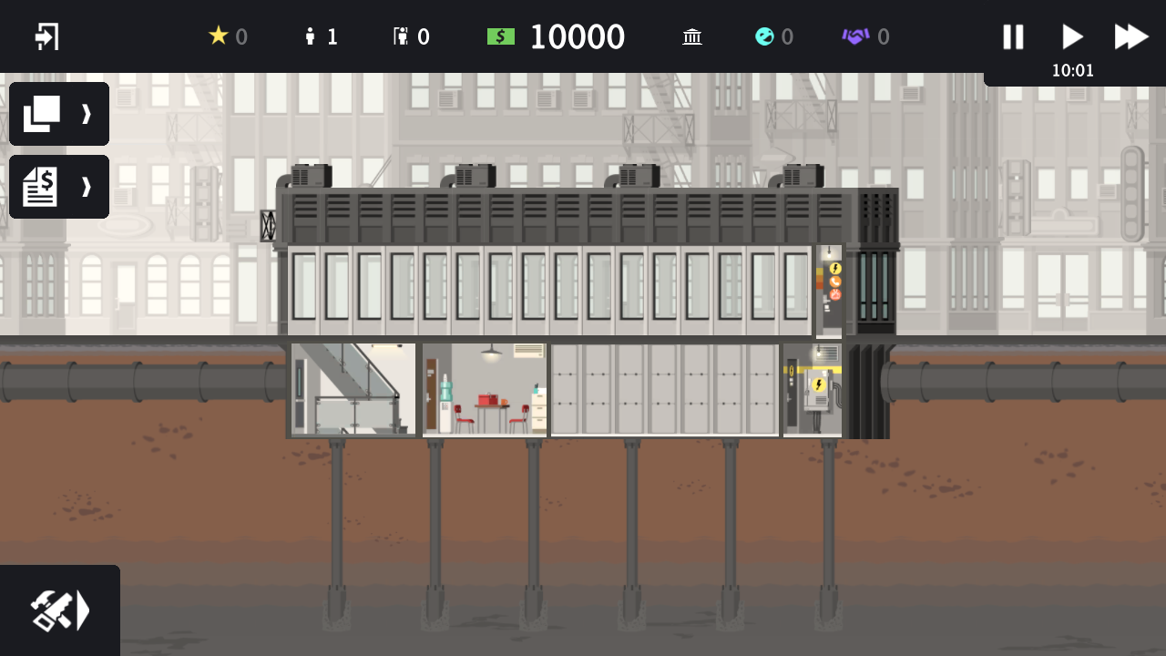 游戏提供了丰富多样的建筑设施选择,玩家可以根据需求安装自动售货机、开放式餐厅和高端零售商店,甚至还能建造豪华健身中心,提供瑜伽课程等特色服务。为了提升大楼品质,你还可以建造精美的喷泉景观,满足租户日益增长的生活需求。