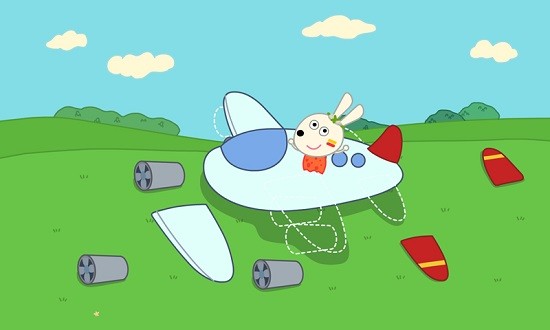 飞机拼图,把散落的部件拼成完整的飞机,并控制飞机飞行,不撞到小鸟,训练手眼协调能力;