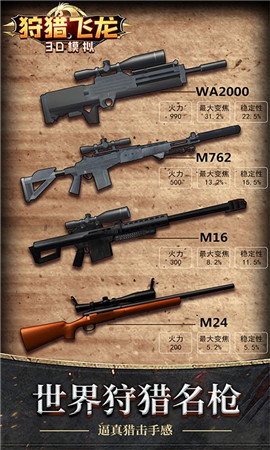 玩家将使用高科技的现代战争武器对抗各种传奇飞龙,游戏中的武器非常丰富,吃鸡游戏中的M24,AWM威力强大的狙击枪等先进武器均可在游戏中使用,给你超级刺激的战场体验!游戏还加入了武器改装系统,玩家可以根据战斗需求调整配件,打造专属的狩猎装备。