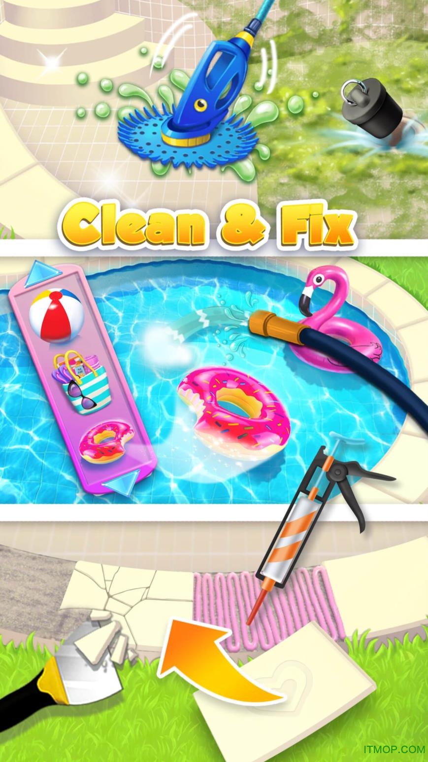 ·创新的工具升级系统,通过完成任务解锁更高级的清洁工具,增加游戏趣味性。