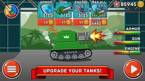 钢铁之丘采用2D卡通风格的画面设计,整体视觉效果明亮活泼,玩法简单易上手但充满趣味性。游戏内置独特的物理引擎系统,使得坦克的移动、射击和后坐力等操作都更加真实,为玩家带来更具挑战性的战斗体验。游戏不断更新加入新型主战坦克和装甲装备,持续优化操作手感,让每个战斗模式都充满新鲜感。基于物理引擎的创新玩法设计,让玩家无论何时何地都能享受到紧张刺激的坦克对战乐趣。