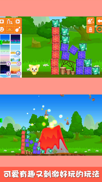 乐高积木园APP是一款专为儿童设计的创意益智软件,旨在通过趣味互动激发孩子的智力潜能与创造力。在这个充满想象力的虚拟乐园里,小朋友们可以化身为小小建筑师,为可爱的小动物们打造各式各样的梦幻住所。从温馨的小木屋到宏伟的城堡,每一块积木都是实现创意的基石。完成建筑后,孩子们还能通过"灾难测试"功能检验房屋的坚固程度——无论是面对怪兽的破坏还是火山爆发的冲击,只有精心设计的建筑才能经受住考验!