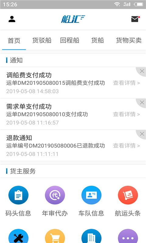 船汇-货主是船汇公司专为货主打造的一款智能水路运输服务平台APP,通过移动互联网技术连接货主与船主,实现高效、便捷的航运资源匹配。用户可随时随地查询货驳船、回程船等各类船舶信息,享受一站式O2O航运服务。平台运用大数据智能算法,帮助货主快速找到性价比最优的运输方案,大幅降低物流成本,同时提升船舶配货效率,减少空载返航,为传统航运行业注入数字化新动能。