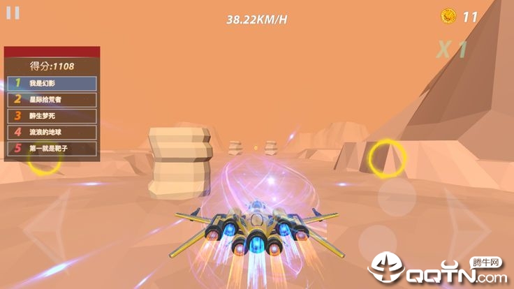 加速圈:是玩家瞬间加速,超越前面的飞行高手。固定点获得,不能随时使用。这些金色光环分布在赛道的特定位置,精准穿过可获得爆发性加速效果。