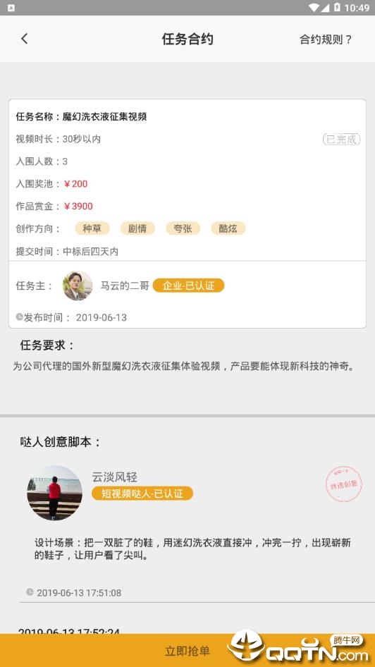 企业可以通过发布任务需求,征集相关创意短视频,获得低成本高效率的短视频途径,同时还能获取详细的数据分析报告,助力营销决策;