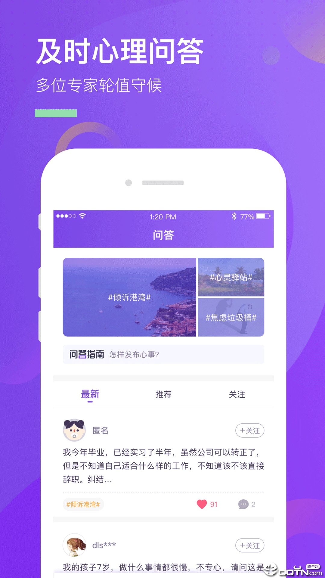 心理互助成长社区,专家助阵,帮您答疑解惑。您可以匿名写下内心的困扰,权威心理专家会为您轮班解答,扫清您的烦恼。社区还设有心理测试、互助小组等功能,让您在获得专业帮助的同时,也能与其他用户交流心得。