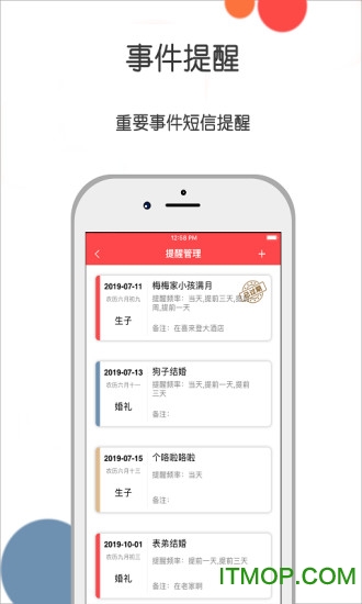 【事件提醒】提醒管理:支持多种提醒方式设置,包括短信、APP推送等,可提前设置提醒时间,确保不错过任何重要场合。