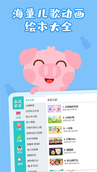 百万儿歌动画、睡前故事、音律童谣、绘本故事、互动场景、舞蹈绘画……更多优选内容给孩子一个快乐的童年。