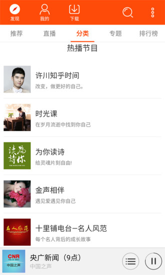 含有中国最全面的电台资源库,包括中央台、各省市地方台以及港澳台地区特色电台,让您足不出户就能感受各地文化特色。平台还接入了多个国际知名电台,真正实现全球声音一网打尽。