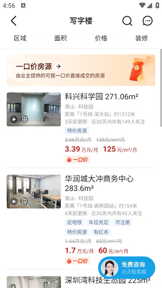 该软件的智能筛选系统采用大数据算法,不仅能基于LBS定位推荐周边3公里内的优质房源,还能学习用户的浏览偏好进行个性化推荐。高级筛选支持多达12项细分条件,包括楼层高度、采光情况、物业配套等细节,帮助企业找到最匹配的办公空间。