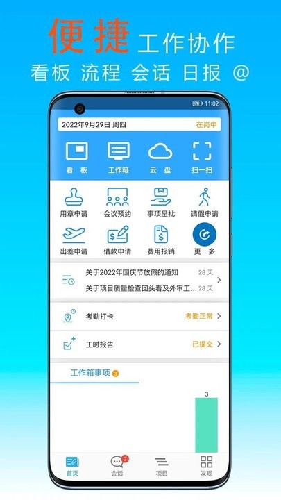 实时信息获取:员工可随时随地查阅单位最新资讯和通知公告,掌握企业动态。内置多种内部沟通渠道,让团队成员保持紧密联系,即使不在办公室也能随时协作。
