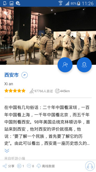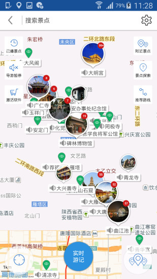 导游功能:提供步行和行车两种导游模式,通过高精度GPS定位技术,为您精准播报每个景点的历史文化背景和艺术价值,让您深入了解西安的千年文明。