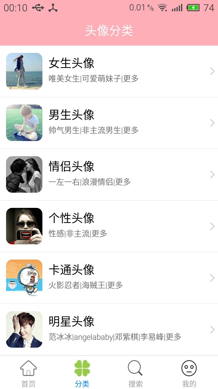 【个性】8大主分类下细分为200多个精准子类,从文艺清新到酷炫暗黑应有尽有。新增"DIY专区"支持简单图片编辑功能,可以添加文字、滤镜等个性化元素。独创"风格测试"功能,通过简单问卷帮您找到最适合的头像类型。所有分类都经过大数据分析,确保符合当下年轻人的审美偏好。