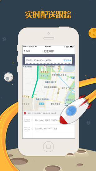 服务跟踪——全程提供可监控的专人配送服务:实时更新配送进度,您可以通过地图直观查看配送员当前位置和预计到达时间。