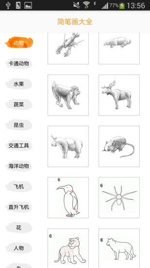 简笔画大全app是一款专为绘画爱好者打造的优质绘画学习软件,它汇集了海量简笔画资源,包含数千种精心挑选的简笔画图片和详细教程。无论您是想要引导孩子学习绘画的家长,还是对绘画感兴趣的初学者,这款软件都能为您提供专业而有趣的绘画指导。通过循序渐进的教学方式,让每位用户都能轻松掌握简笔画技巧,开启美妙的绘画之旅。