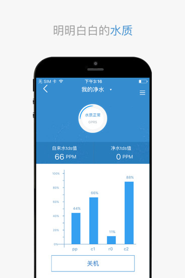 【水质监测】:采用先进传感技术,实时监测水质TDS值、PH值等关键指标,并以直观图表形式展示水质变化趋势,让您对饮水质量了如指掌。当水质出现异常时,APP会立即发出提醒,确保您的饮水安全无忧。