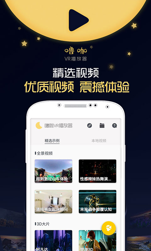 精选视频栏目为您精心挑选了各类高品质视频资源,包括3D电影、全景视频等,内容定期更新,保证您总能发现新鲜有趣的视频内容。本地视频功能可以自动检索您设备上的视频文件,一键刷新就能找到最新添加的资源,省去手动查找的麻烦。