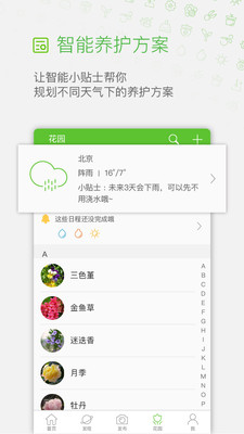 智能养护:结合当地天气状况和植物特性,绿手指会为你量身定制科学的养护方案。系统会根据季节变化自动调整浇水、施肥等养护建议,让你的植物始终保持最佳状态。