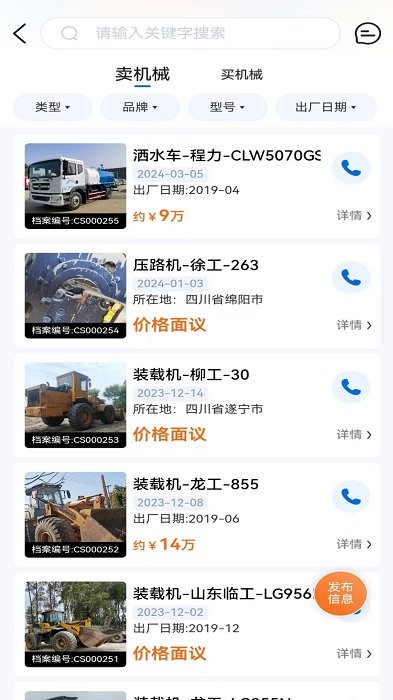 机友邦是一款专为机械行业从业者打造的高效服务平台,集设备租赁、维修保养、工程对接等核心功能于一体。通过智能化技术手段,平台实现了机械设备全生命周期管理,大幅提升了行业协作效率。无论是个人机主还是企业用户,都能在这里找到精准匹配的行业资源,享受从设备管理到业务拓展的一站式解决方案。平台汇聚了全国各地的优质机械资源,通过精准算法推荐,帮助用户快速完成设备租赁、维修服务对接等需求,真正实现了"让机械服务更简单"的愿景。