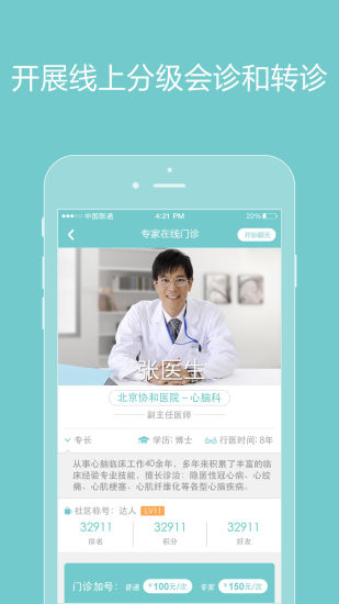 《诚医心脑》构建了完善的医疗资源网络,患者可以根据自身需求自由选择合适的医生和专家。平台提供多种服务模式,包括线上图文咨询、视频会诊、电话问诊以及门诊预约等。特别值得一提的是,软件创新性地搭建了三层分级诊疗平台,实现了基层医生、专科医生和顶级专家的无缝衔接。患者可以根据病情严重程度,灵活选择向不同级别的医疗专家发起问诊、会诊或转诊,确保每个患者都能获得最适合的医疗服务。