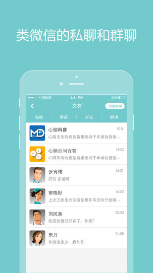 《诚医心脑》集成了多项实用功能,为用户带来全方位的医疗体验。平台支持高清视频直播和录播功能,确保远程诊疗的清晰流畅,同时支持图文传输,方便医生详细了解病情。软件设有专门的患友交流社区,患者可以在这里分享经验、互相鼓励。社交功能方面,软件提供类似微信的交友体验,患者可以与医生和其他患者建立好友关系,进行私聊或群聊。咨询功能方面,平台支持多种形式的线上咨询,包括会诊、转诊、电话咨询和病例咨询等。病历管理功能让患者可以系统整理所有咨询记录和医疗档案,方便随时查阅和调取。