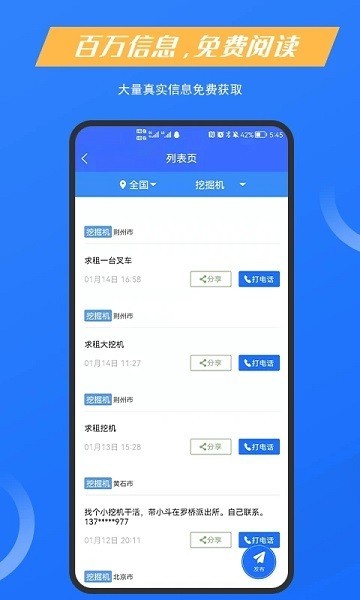九州有活工程机械是由湖北省荒界网络科技有限公司精心打造的一款专业工程机械服务平台,致力于为用户提供高效便捷的工程机械租赁与招聘解决方案。无论您是需要寻找挖机、吊车、装载机还是其他各类工程设备,或是希望出租闲置机械,这款软件都能满足您的需求。通过智能匹配系统,用户可以快速联系到附近的专业师傅,实现精准对接,大幅提升工程效率。平台还支持设备买卖信息发布,让交易更加透明高效。立即下载体验,开启您的工程机械智能服务之旅!