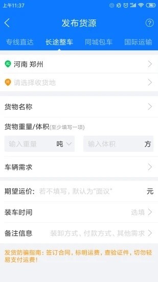 通过我们的这款软件的线上编辑的信息进行一键式的一个发布让我们的司机朋友知晓,信息发布后即时推送,确保运输需求能够第一时间被响应。
