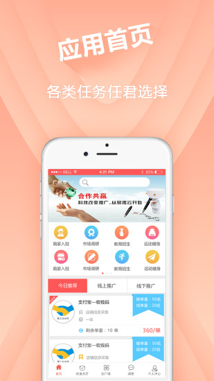 新增招聘类兼职工作模块,支持企业发布短期用工需求。系统提供智能匹配功能,可根据地理位置、技能要求等条件快速匹配合适的推广人员。