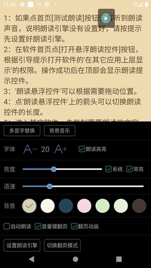 如果你喜欢看文章、看新闻、看小说等,但是又担心影响视力或者本身视力就不好,那么本软件就是专门为你定制的,赶快下载尝试一下吧。软件还支持定时关闭功能,特别适合睡前使用。