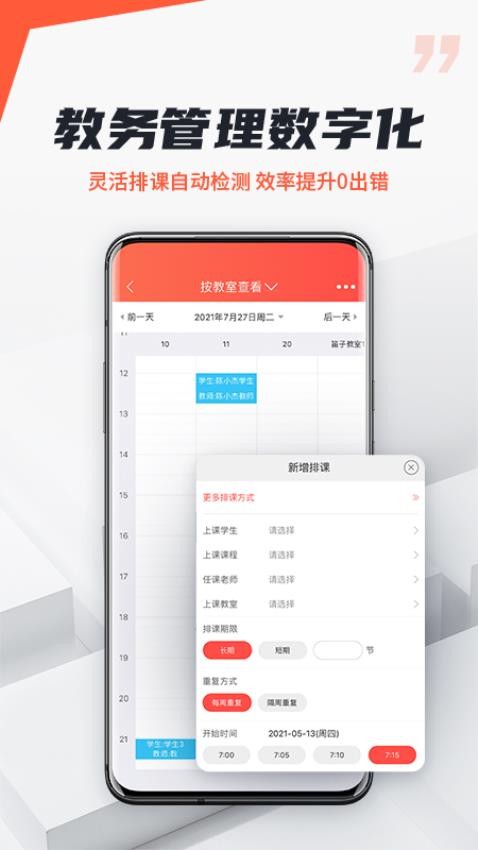 打破办公场所限制,通过手机即可完成日常管理工作,让教务人员享受更灵活的工作方式。