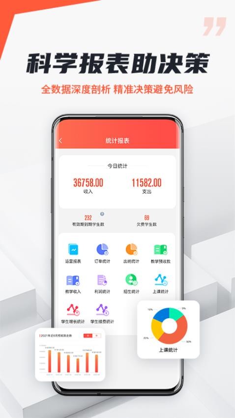 提供直观的数据可视化功能,关键指标一目了然,帮助管理者快速掌握机构运营状况。