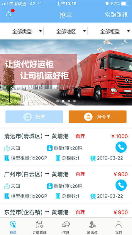 好运柜是国内领先的集装箱物流信息服务平台,采用最先进的移动互联网技术,为用户提供实时更新的海量货源信息。作为行业首创的免费手机配货平台,好运柜拥有超过百万的活跃用户群体,包括货车司机和货主。平台专注于为运输物流行业提供一站式解决方案,不仅可以快速查找一手货源信息,还能便捷发布物流车源信息。通过智能匹配系统,好运柜完美实现了"为车找货(套箱)"和"为货找车(托运)"的双向服务,为物流从业者创造了更高效、更便捷的赚钱机会。平台还特别注重交易安全,采用多重验证机制确保每一笔交易的真实可靠。