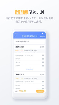 爱肝宝是一款专为肝病患者和医务工作者打造的创新医疗服务平台,致力于通过互联网技术为肝病诊疗提供全方位的解决方案。作为肝病患者值得信赖的伙伴,爱肝宝以患者需求为核心,构建了一个集诊疗信息管理、护理服务、随访跟踪、筛查评估和健康指导于一体的综合服务体系。