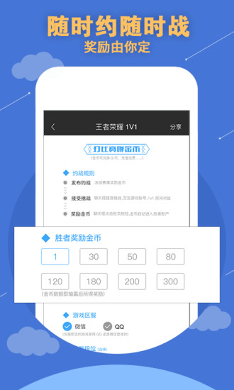 在《竞哥哥》中,你可以随时发起挑战,与来自全国各地的玩家进行1V1对战。无论是《王者荣耀》还是其他热门电竞游戏,这里都能满足你的对战需求。胜利者不仅能获得金币奖励,还能兑换Q币、话费等实用礼品,让你的每一场对战都充满价值。
