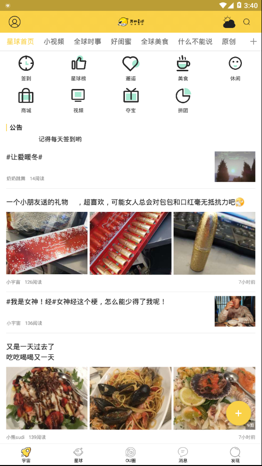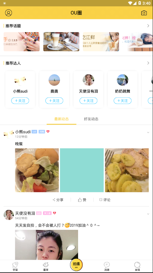 在OU星球上,你可以随时提醒好友,需要时就@他吧!我们支持帖子上传小视频功能,让你可以第一时间将精彩视频分享给整个社区。通过群组交友功能,你可以发现更多志同道合的朋友,拓展你的社交圈。我们还对界面进行了全面升级,样式更加丰富多样,内容呈现更加全面细致,为你带来更好的使用体验。