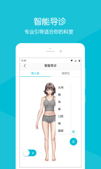 智能导诊系统:通过症状自诊功能,患者可以输入不适症状,系统将智能分析并推荐最适合的就诊科室,帮助患者准确找到对应专家。