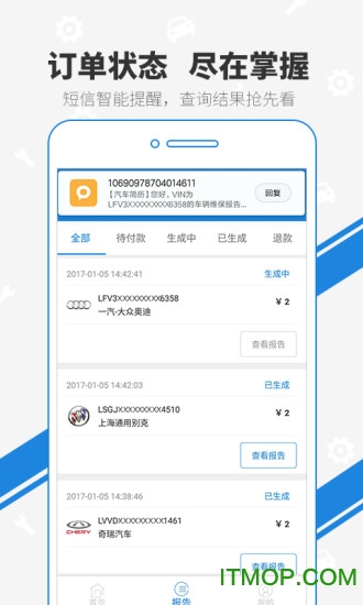 报告页面清晰展示了查询状态,包括待付款、生成中、已生成和退款四种状态。用户可以随时掌握查询进度,如果遇到查无记录、查询超时或查询失败的情况,系统会自动全额退款,确保用户权益得到充分保障。