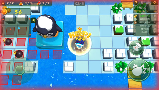 玩家在游戏中可通过游戏中的炸蛋道具,获得技能道具,包括加速、炸弹威力提升等实用技能;