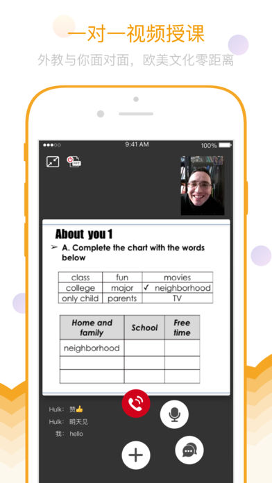 丰富的互动功能,支持与外教进行文字、图片、表情等多种形式的交流,让学习过程更加生动有趣;
