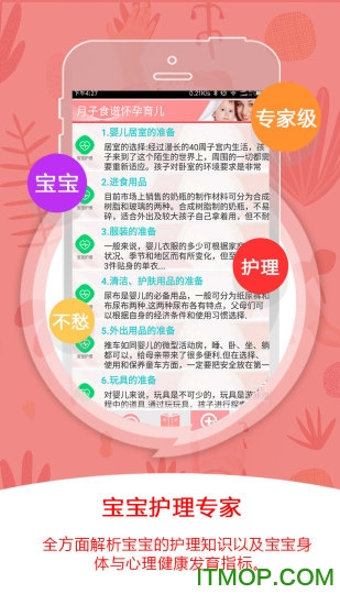 月子食谱:根据体质检测推荐个性化餐单,包含300+道经过营养师认证的月子餐食谱,每道菜都标注详细烹饪步骤、营养成分及适用阶段。
