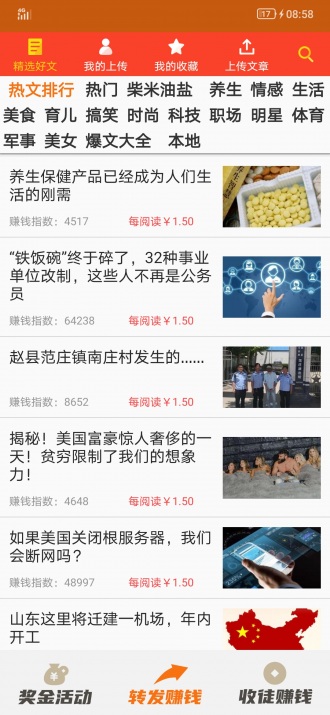注册即送1元现金奖励,8元即可轻松提现,首次提现秒到账,让您快速体验赚钱乐趣。平台在9-11点、14-15点、18-20点设置高单价时段,转发文章单价高达2元。每日有转发收入的用户,次日还可领取额外红包奖励,随着等级提升,红包金额也会相应增加。支持文章导入功能,快速提升收益,8元起提现,当天申请当天到账,让您的每一分努力都能及时兑现。