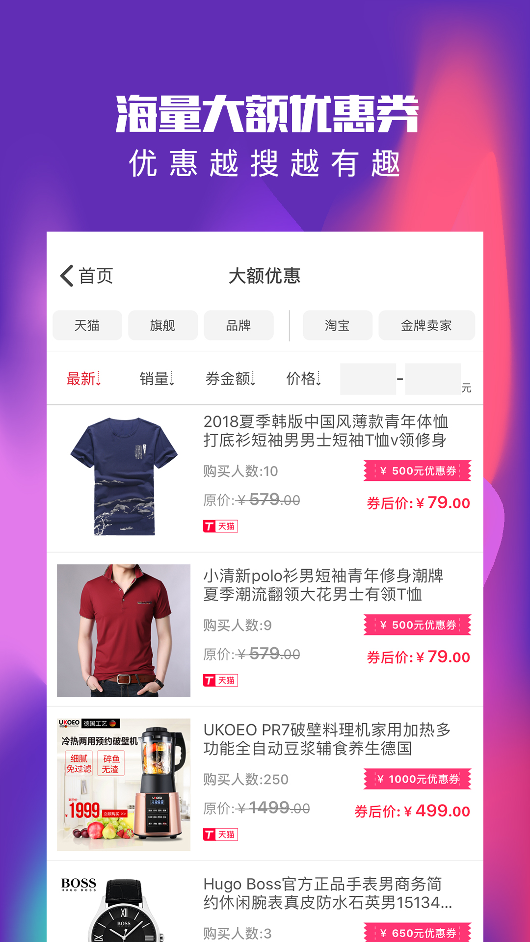 万亨淘淘优惠券app特色: