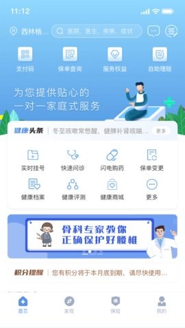 进入软件首页后,用户可以实时挂号、咨询医生、视频问诊等。首页采用智能推荐算法,会根据使用习惯和健康需求,个性化展示最常用的功能入口,提升操作效率。
