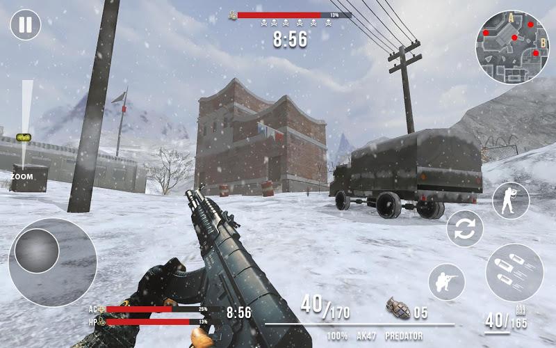 在寒冷的天气里,通过选择不同的武器和完成每一项任务来赢得战争,在寒冷的天气里,先用快速的子弹射击敌人部队。体温系统增加了生存要素,玩家需要寻找热源维持体温,否则瞄准准度会大幅下降。