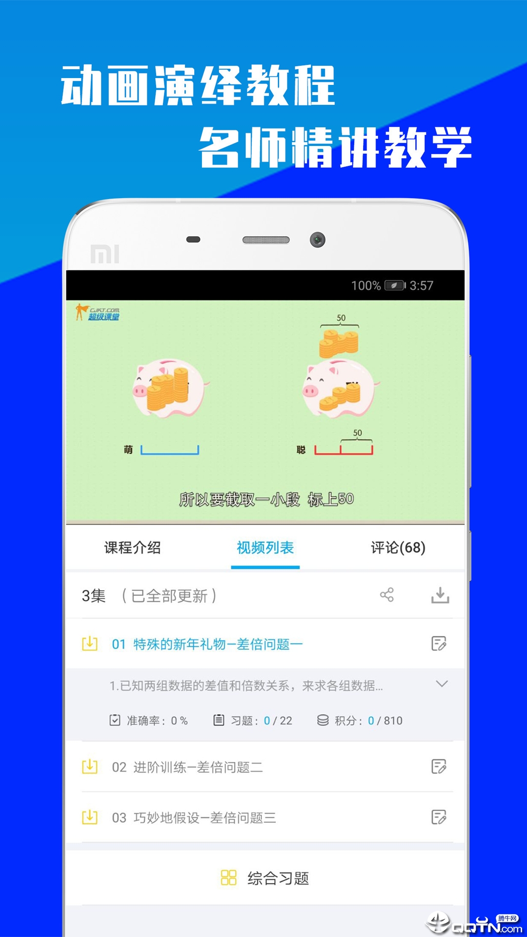 app中的教学内容由名校专业老师精心录制,结合科学性和专业性的教学视频,采用小学生更容易接受的方式进行知识传授和训练。每节课时长控制在15分钟左右,方便学生随时随地利用碎片时间学习。课程通过生动有趣的动画视频进行知识点讲解,配合典型例题的实际分析,再通过专门的习题演练,帮助孩子快速掌握数学知识,有效锻炼数学逻辑思维能力。