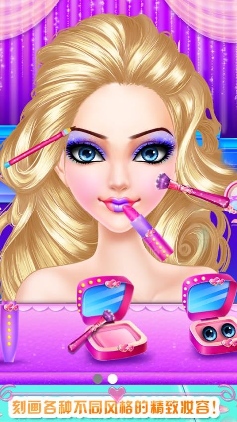 包含丰富的美妆工具和产品,如粉底、眼影、腮红等,可自由搭配打造不同风格的妆容。系统会根据选择自动调整妆容效果,让小朋友直观看到不同化妆品的实际效果。