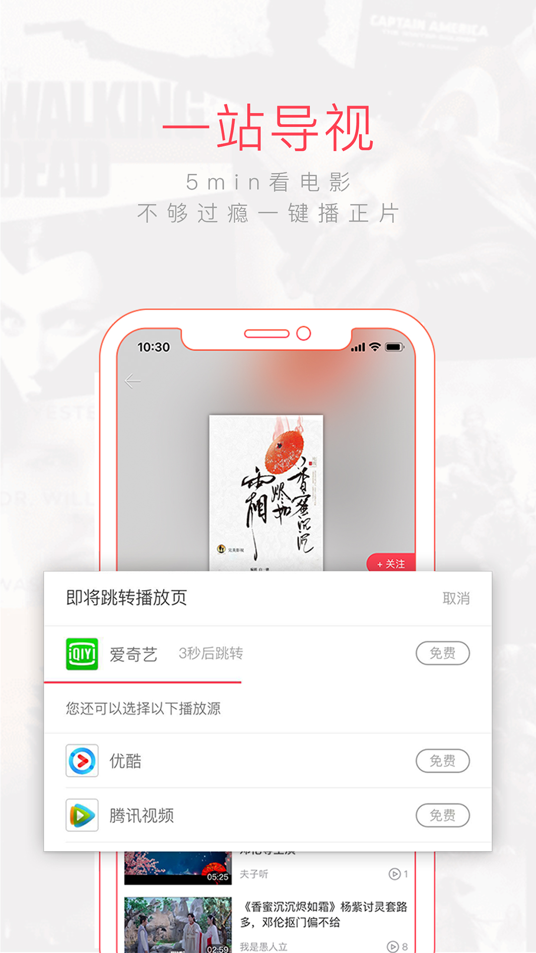 看单分享,人人分享人人得,片慌再也不紧张。你可以创建自己的观影清单,与好友分享观影心得,还能看到其他用户的精彩推荐。一站导视,5min看电影,不够过瘾一键播正片。每部电影都配有专业的剧情解说和精彩片段,让你快速了解影片内容。发现福利,热门电影0元看,周边好礼每周送。平台经常举办观影活动,参与就有机会获得电影票、周边商品等丰厚奖品。无限精彩,网络各类影视短视频,小编为你挑好片。我们还提供独家幕后花絮和主创访谈,带你深入了解电影制作的点点滴滴。